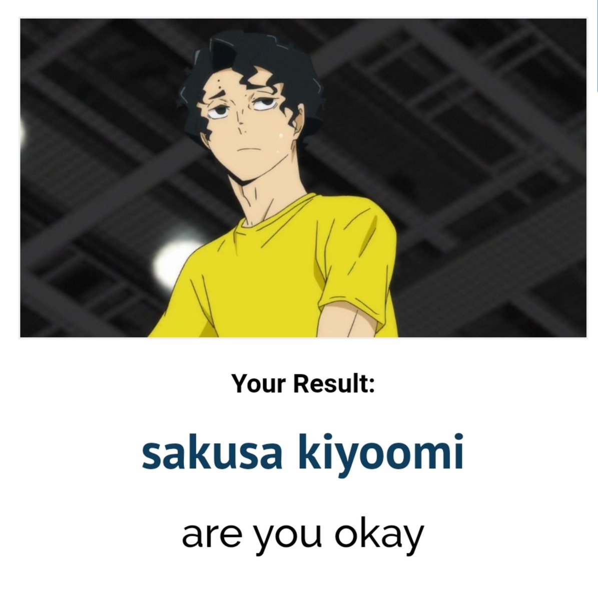 Whos your boyfriend in Haikyuu based from your POV. Are you a setter or a spiker. Anime Kin Quiz Haikyuu. I got Osamu 3 times and Sakusa 1 time oof. BUT this quiz has some triggers for some people trauma childhood are you okay with that.